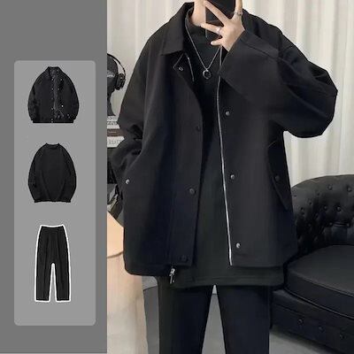 今だけ圧倒的販売 2025 おしゃれ 高級感 メンズセットアップ ショート ジャケット+長袖シャツTシャツ+ロングズボン 3点セット カジュアル アウター