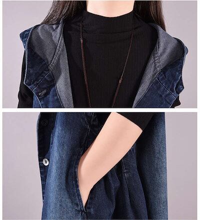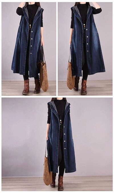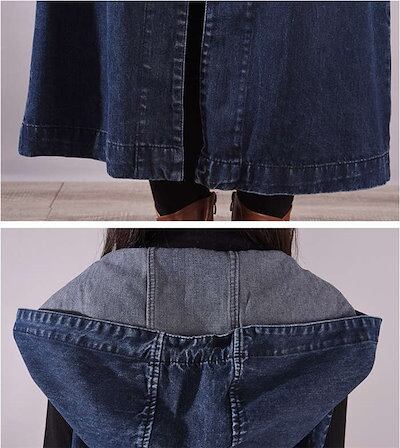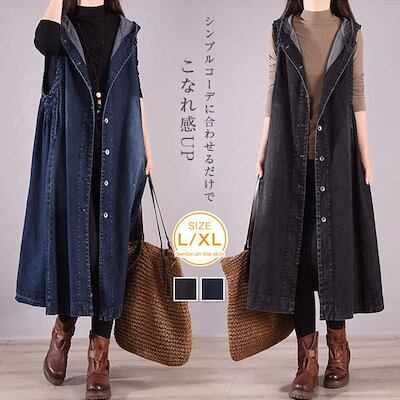 【急速出荷!】ロングデニムベスト ベスト ジレ レディース デニムベスト フード付き ロングジレ ノースリーブ デニムアウター 春秋 デ ロング丈 ゆったり ジャケット 羽織り 前開き カジュアル 体