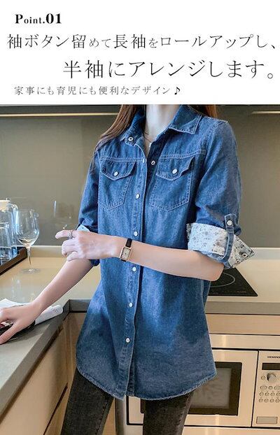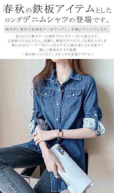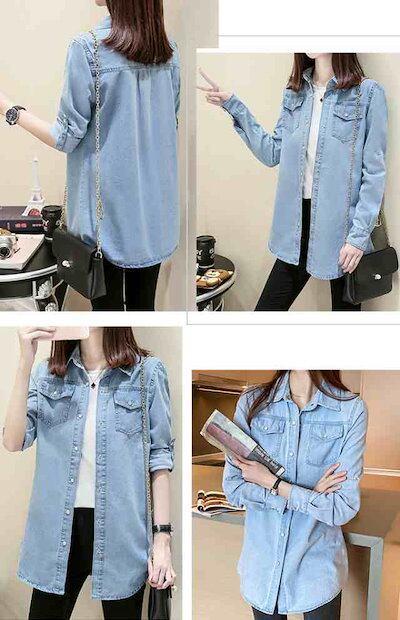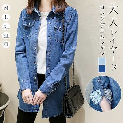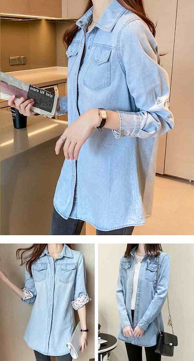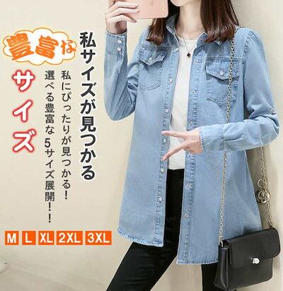 [ 即納 激安販売!]新作 ロングデニムシャツ ブラウス 袖丈調整可 デニムジャケット Gジャン レディース 春 秋 冬 上品 長袖 トップス シャツ デニム 大きいサイズ カジュアル おでかけ 着