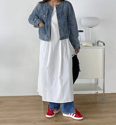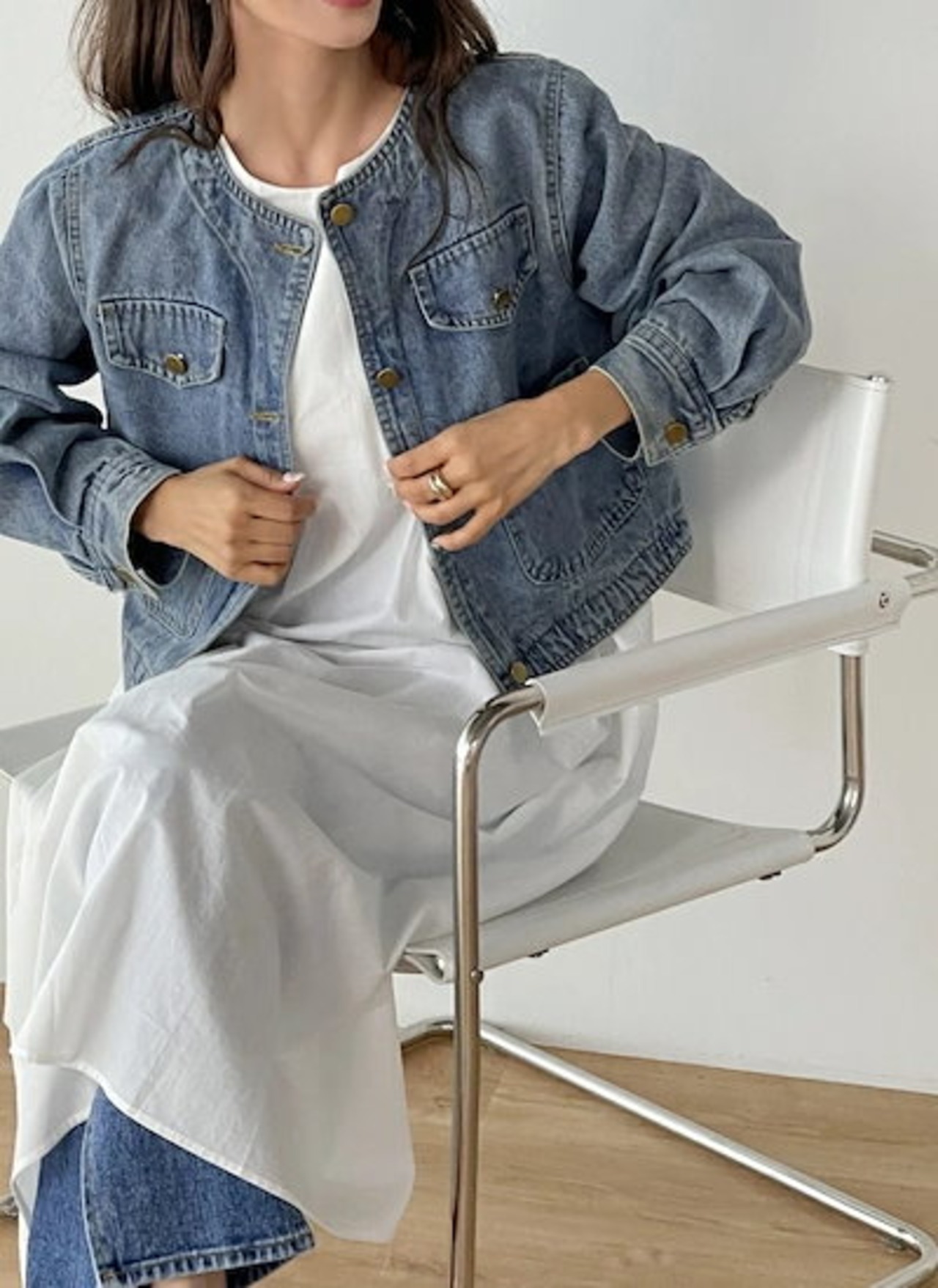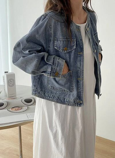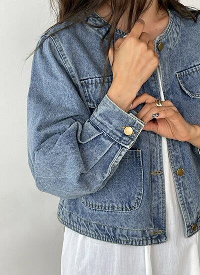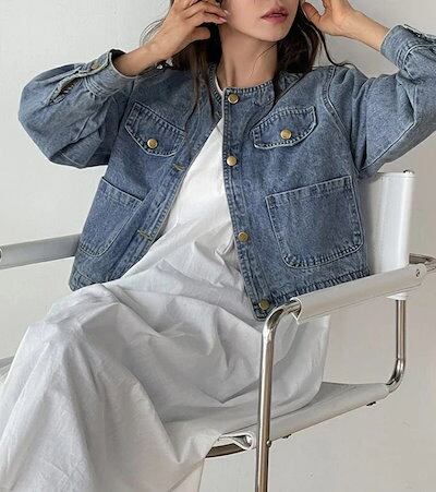 デニムジャケット アウター ライトアウター レディース デニムコート デニム ジャケット 春秋 デニムアウター ショート丈 春 ポケット付き トップス 長袖 長袖ジャケット ノーカラー カジュアル お