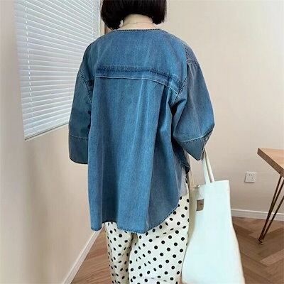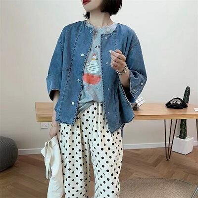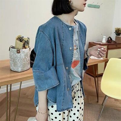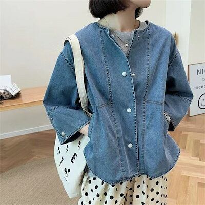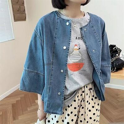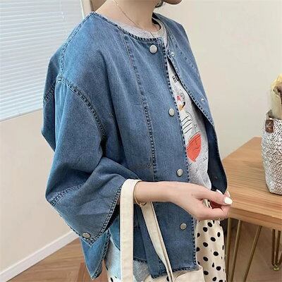 カーディガン レディース デニム デニムコート 春秋 初秋 コーディガン 春 夏 アウター デニムアウター トップス ジャケット 七分袖 ノーカラー 7分袖 ショート丈 ライトアウター 羽織り 羽織