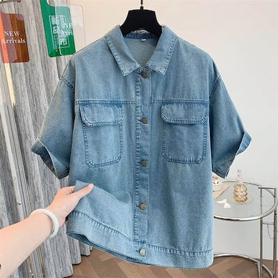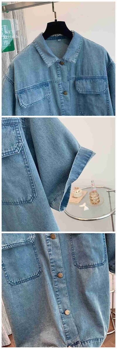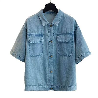デニムシャツ 綿 ブラウス レディース 半袖 夏 秋 春 無地 ジャケット 薄手 コットン デニム シャツ トップス カジュアル 体型カバー ナチュラル おしゃれ 通勤 秋春 綿シャツ オフィス シン