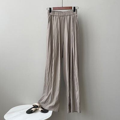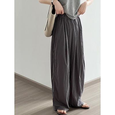 夏の日本と韓国の薄いプリーツカジュアルパンツレディースドレープルーズワイドレッグロングパンツ