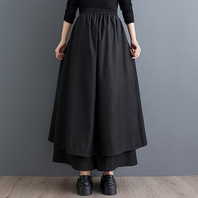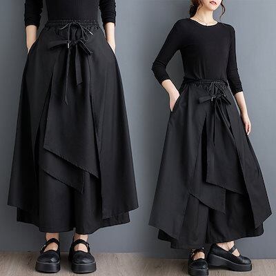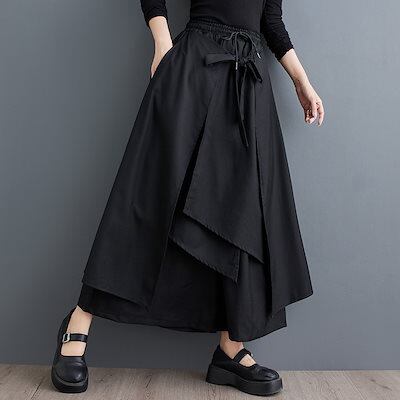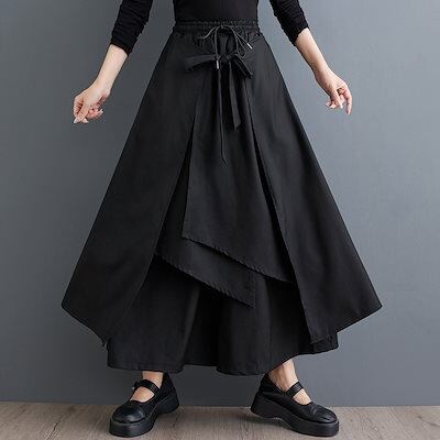 春と夏の日本と韓国の大きいサイズのダークスタイルのフェイクツーピースワイドレッグパンツファッショナブルで万能なルーズストラップカジュアルパンツスカート