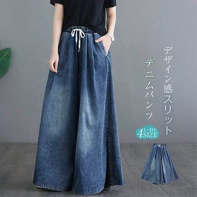秋冬の日本と韓国のワイドレッグジーンズ文学的でシンプルなスリットカジュアルパンツストレートレッグワイドレッグパンツズボン