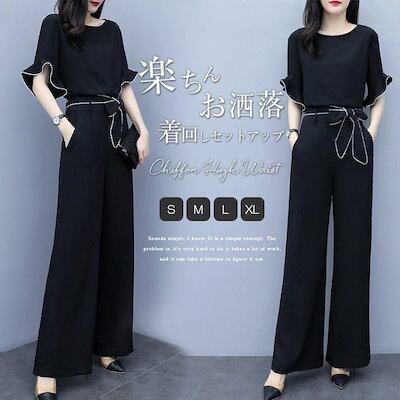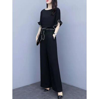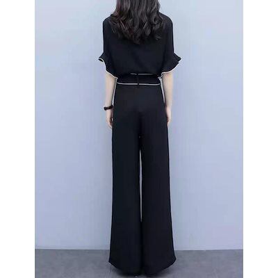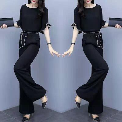 夏の日本と韓国のワイドレッグパンツスーツ女性用シフォンハイウエストスリミングファッショナブルでカジュアルなツーピーススーツ