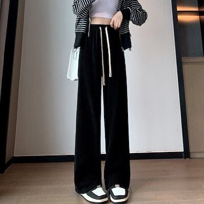 【急速出荷】コーデュロイ ワイドパンツ 2025秋冬 新型の欧綿絨 ズボン 高い腰 女性 百合 ゆったりとした 快適 なカジュアル パンツです レディースロングパンツ