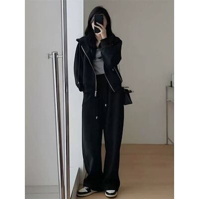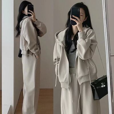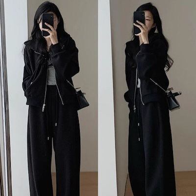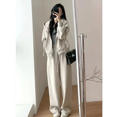 ファッション 運動 新作 レディース 着痩せ 大きいサイズ 秋冬 セットアップ スウェット ワイドパンツ カジュアル パーカー
