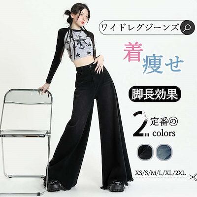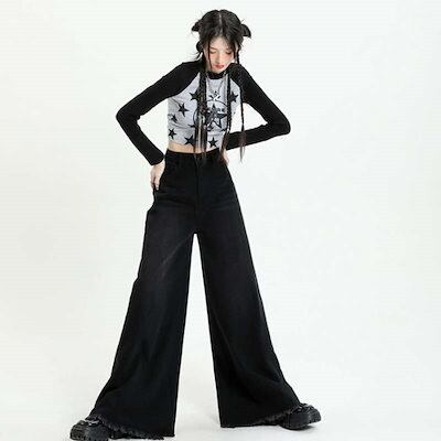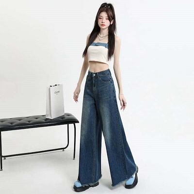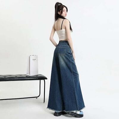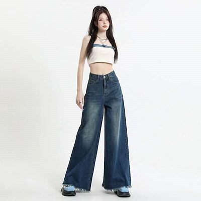 【秋新作】デニムパンツ Y2K レトロ ワイドパンツ 春秋 脚長効果 着痩せ ロングパンツ 裾が広い ほつれた裾のデザイン ズボン レディース 気質 カジュアル ロング丈 流行り おしゃれ