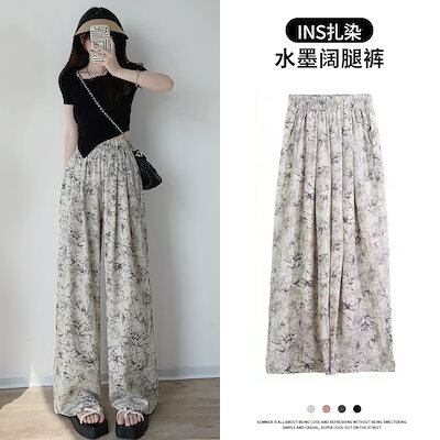 ワイドパンツ タイダイ ワイドパンツ レディース ハイウエスト カジュアル 山本パンツ 夏