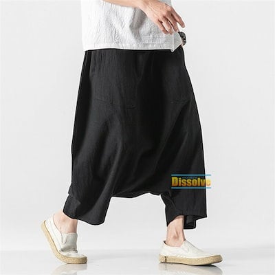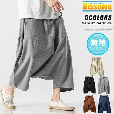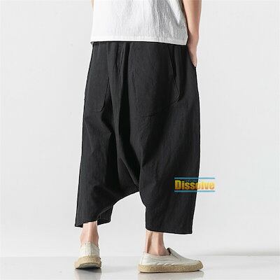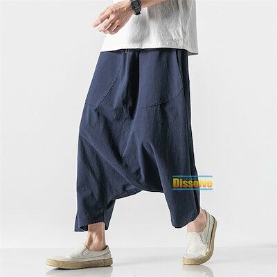 新品タイムセール バギーパンツ サルエルパンツ メンズ しゃれ 八分丈パンツ ワイドパンツ 綿麻パンツ サルエル ワイドシルエット 無地 パンツ 8分丈 膝下 ボトムス 薄手 リネンパンツ シンプル