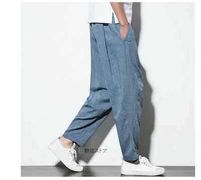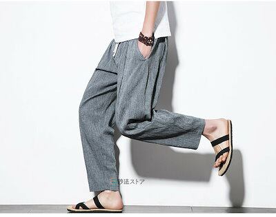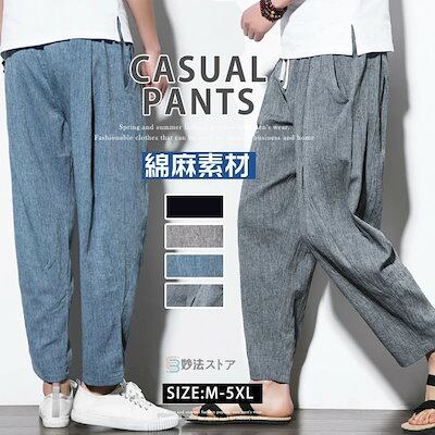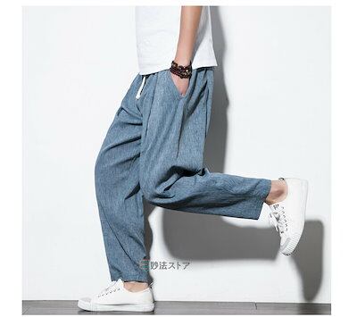 新品タイムセールサルエルパンツ メンズ リネンパンツ 涼しい ズボン 麻パンツ ワイドパンツ ボトムス 綿麻 ゆったり 夏物 コットンリネン ナチュラル プレゼントサルエルパンツ メンズ