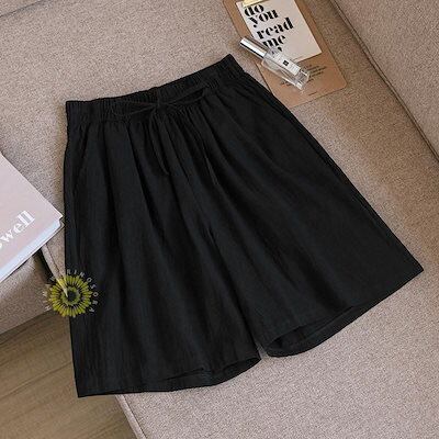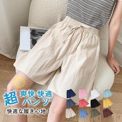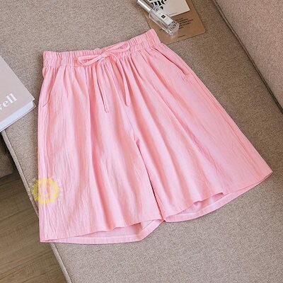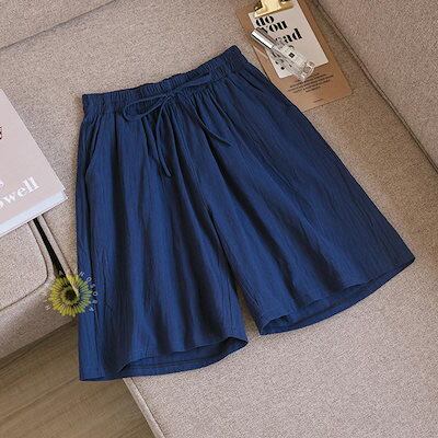 ショートパンツ ハーフパンツ レディース 夏 綿麻 リネンパンツ ワイド 薄手 ウェストゴム ゆったり 吸汗 通気性 体型カバー 部屋着 通勤 運動着