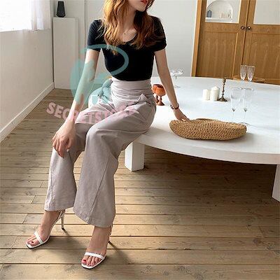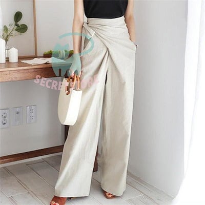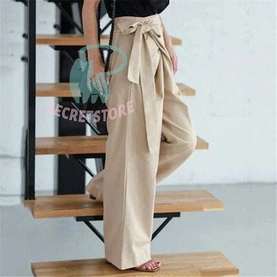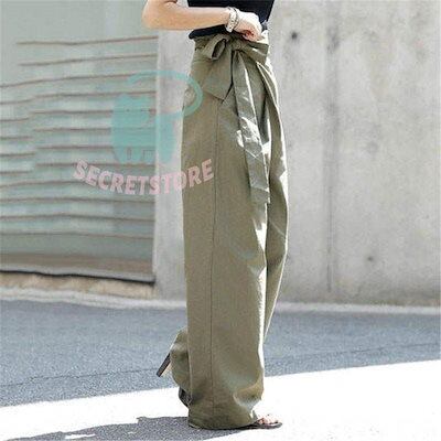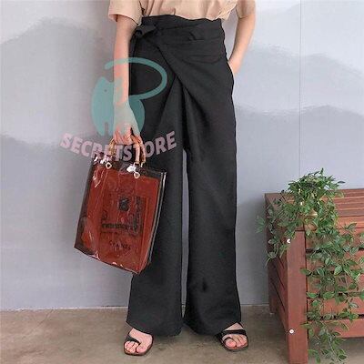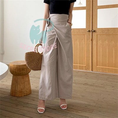 【3日出荷】新品(タイム)ワイドパンツ ガウチョパンツ レディース 綿麻 ボ 麻混 スカンツ スカーチョ ズボン ハイウエスト ウエストゴム ポケット付