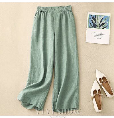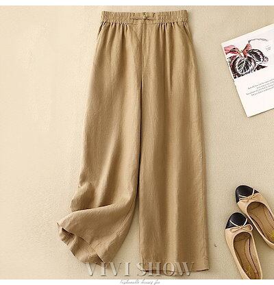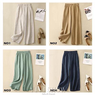 [新品入荷]ワイドパンツ 綿麻ワイドパンツ リネン風 ボトムス 麻綿パンツ ガウチョパンツ レディース 体型カバー ナチュラルな風合い ゆったり