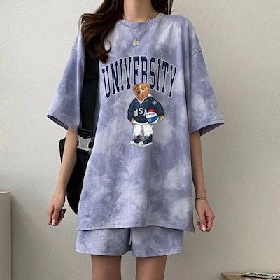 【 3日で出荷 】涼しく楽ちんセットアップ 上下二点セット ゆったり セット 半袖Tシャツ パンツスウェット上下セットトレーナー レディース ジャージ おしゃれ ルームウェア 韓国ファッション