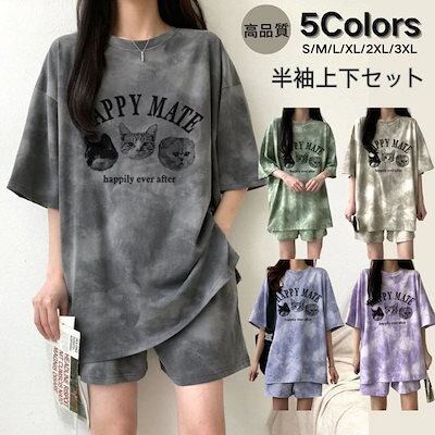 【 3日で出荷 】涼しく楽ちんセットアップ 上下2点セットアップ 半袖Tシャツ パンツスウェット上下セットトレーナー レディース ジャージ おしゃれ ルームウェア 韓国ファッション