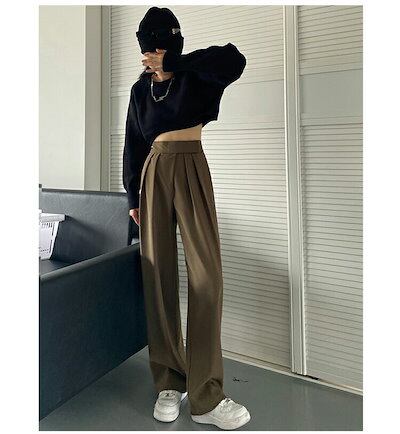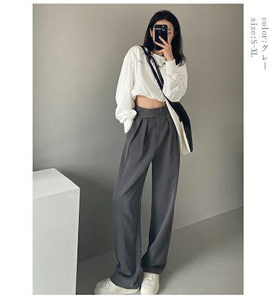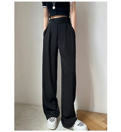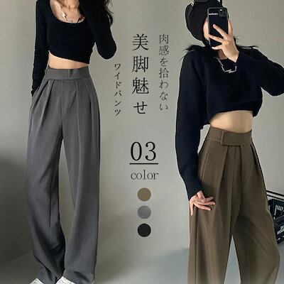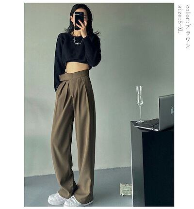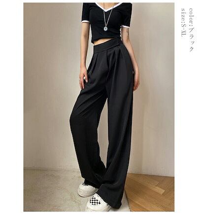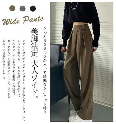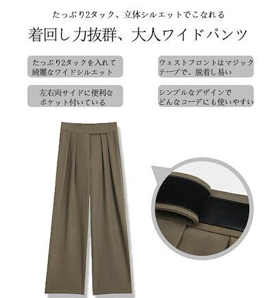 タックワイドパンツ レディース ワイドパンツ 大きいサイズ きれいめ ボトムス ストレートパンツ 黒 美脚 マジックテープ 履きやすい リラックス カジュアルパンツ タック 美シルエッ