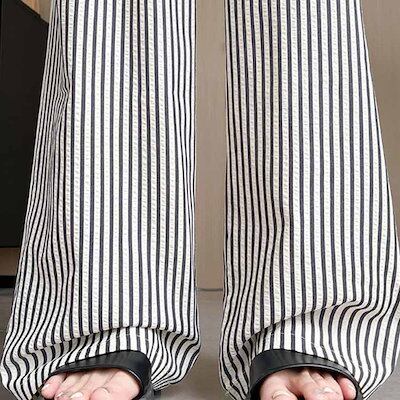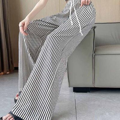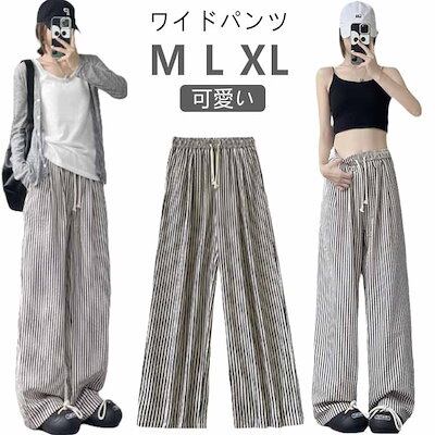 特売セールストライプ柄 レディース カジュアル 大きいサイズ ズボン 綿麻風パンツ ワイド ロング丈 可愛い ワイドパンツ パンツ ゆったり ロングパンツ きれいめ 薄手 着痩せ ワイドパンツ 森ガー