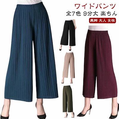 限定販売なくワイドパンツ 無地 ガウチョパンツ 薄手 プリーツパンツ 九分丈 ズボン 春夏 きれいめ らくちん パンツ レディース ウエストゴム ボトムス 9分丈 リラックスパンツ ハイウエスト しゃ