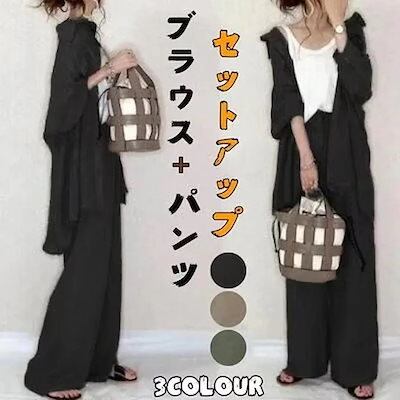 【3日出荷】セットアップ 2点セット レディース 春服 夏 シャツ+ワイドパンツ おしゃれ ルームウェア 韓国ファッション きれいめ セットアップ