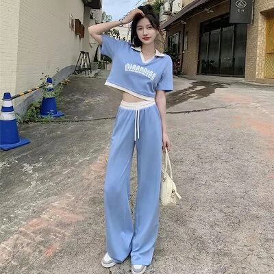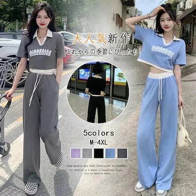 【3日出荷】大好評新作 ワイドパンツ 人気流行り スウェット上下セット シンプル ゆったり 脚長効果 韓国 セットアップ カジュアル 涼しく楽ちん レディース 日焼け止め カジュアル きれいめ 大きい