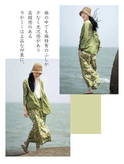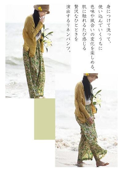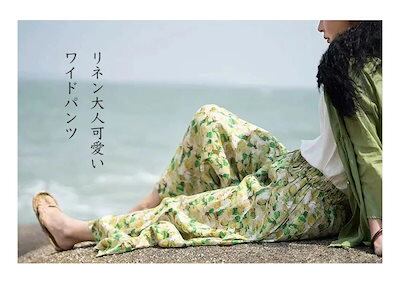【急速出荷!】ン ワイドパンツ レディースン 麻 グリーン系 花柄 ゴム フリーサイズ 20代 30代 40代 50代 60代 70代 締め付けない ハイウェスト 体型カバー きれいめ