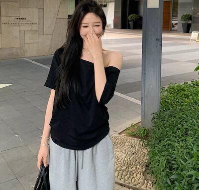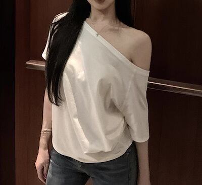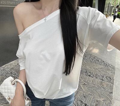 2024 春夏 甘い 2wayトップス Tシャツ ラウンドネック丈 休日 フレンチ 韓国 半袖ブラウス ファッション系 タイト スリムフィット丈短め ショート レディースへそ出し休日おしゃれ T