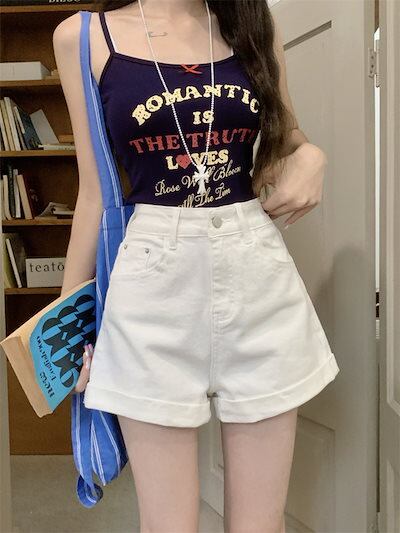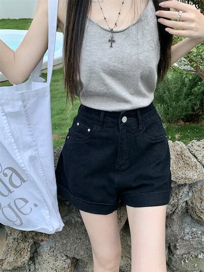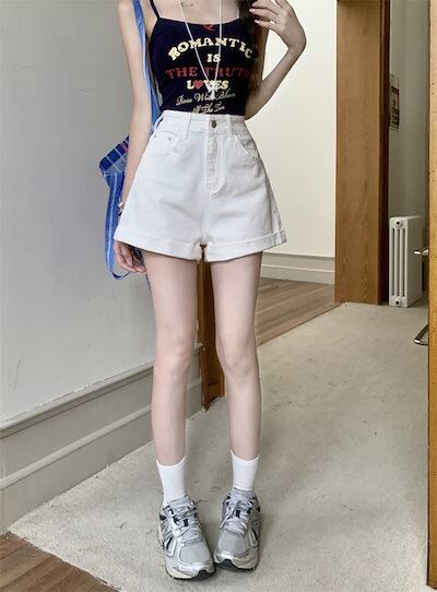 2024 春夏パンツ ショート丈 デニム ジーンズ ワイド ハイウエスト 美脚効果 脚長効果 細見え 夏 白 黒 おしゃれ かわいい 韓国ファッション レディース お出かけ