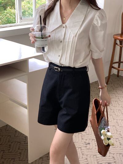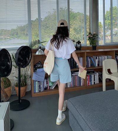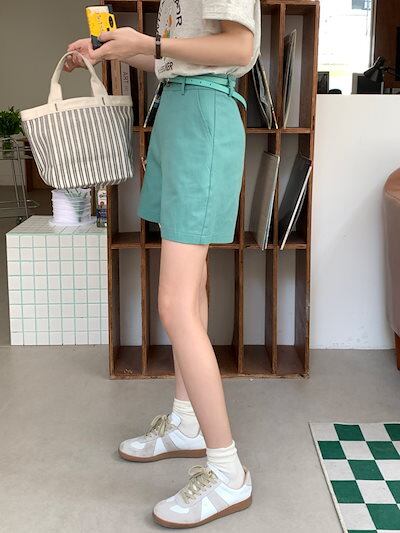 2024 春夏パンツ ハーフパンツ ワイド ハイウエスト 美脚効果 脚長効果 細見え 夏 緑 黒 白 水色 おしゃれ かわいい 韓国ファッション レディース お出かけ