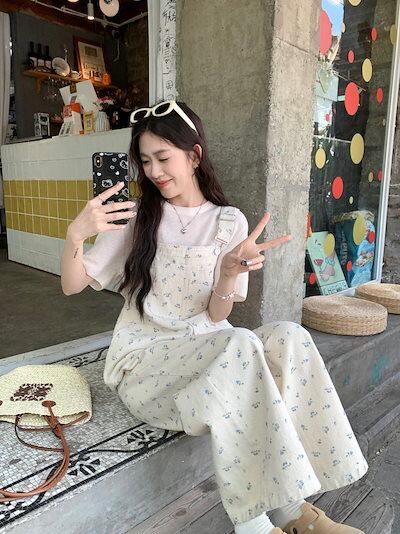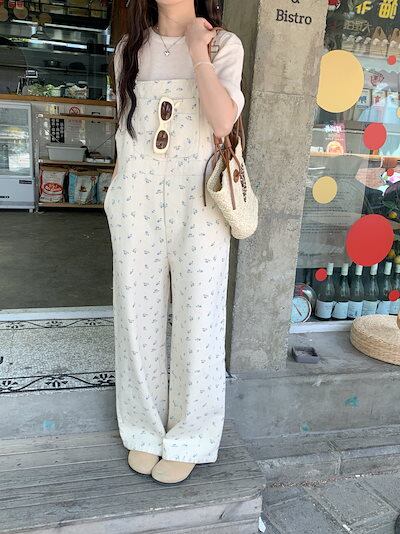 2024 夏 韓国 可愛い かわカジ オールインワン かわいい サスペンダー カジュアル系 パンツ サロペット カジュアル おしゃれ 甘辛 白 ホワイト