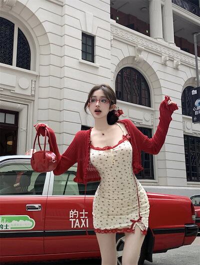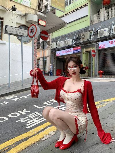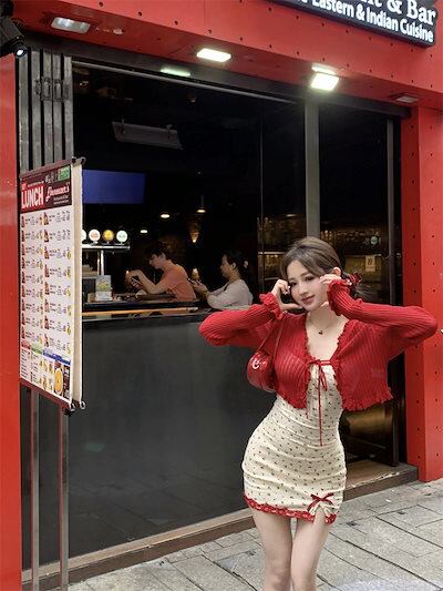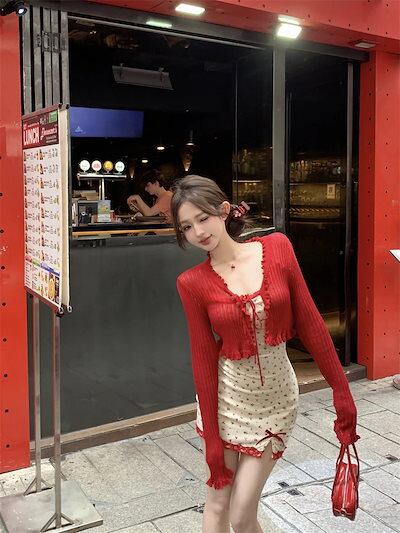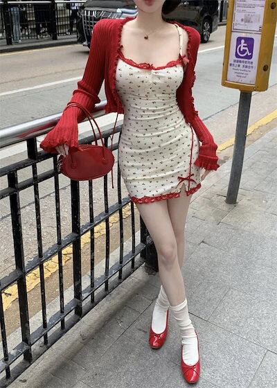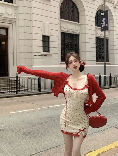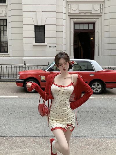 2024夏 韓国 ワンピース ロング丈 ゆったり キャミソール ハイウエスト 小花 フィッシュテールかわいい カジュアル おしゃれ 夏 ファッション フィッシュテールフレンチお出かけ