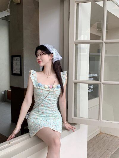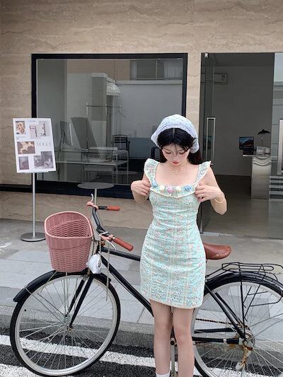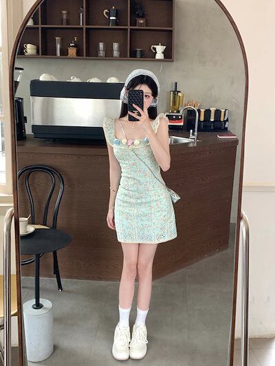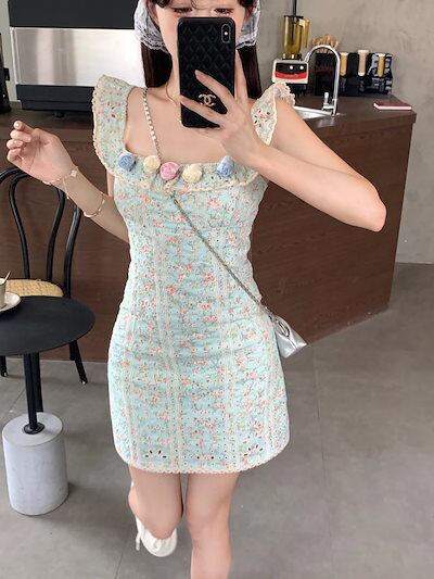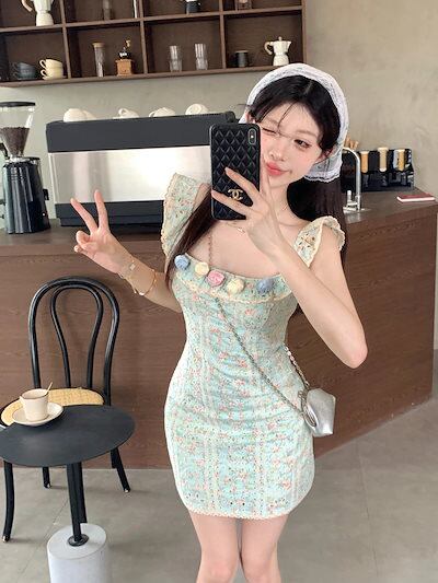 2024春夏ワンピース ミニ丈 小花 ゆったり 夏 カラフル 韓国ファッション レディース おしゃれ かわいい キュート 甘め カジュアルお出かけフレンチ