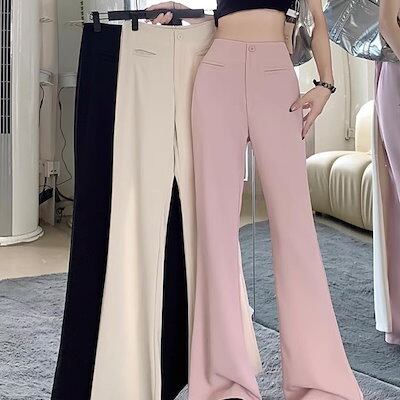 2024 夏 韓国パンツ ロング丈 ポケット ワイドレッグ ハイウエスト 美脚効果 脚長効果 細見え 夏 白 黒 きれいめ おしゃれ かわいい 韓国ファッション レディース お出かけ