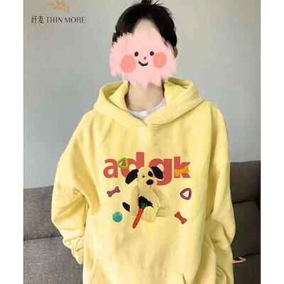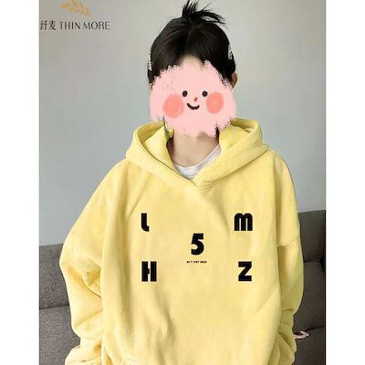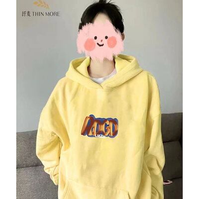 作スウィートイエローのフードプラスショルダーパーカーレディースins風