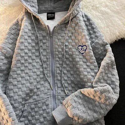 【2025】パーカー2025初秋作フード付きトレーナーレディースゆったりワッフル百掛けデザイン長袖カーディガンジャケット韓国