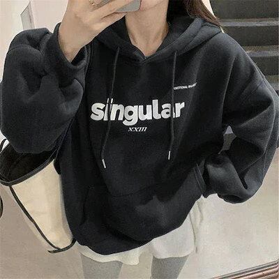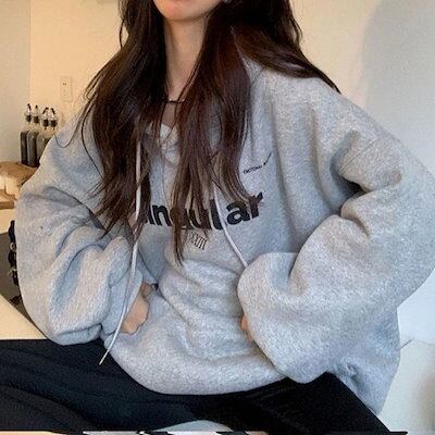 パーカーパッド入り秋春フード付きスウェットレディース大きいサイズコートルーズトップス学生カップル韓国