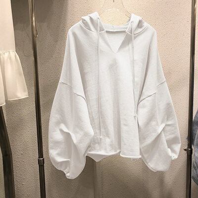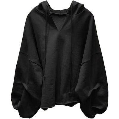 【2025】パーカースウェットレディースフード付き春と秋の作薄ルーズ無地Vネック学生トップス韓国
