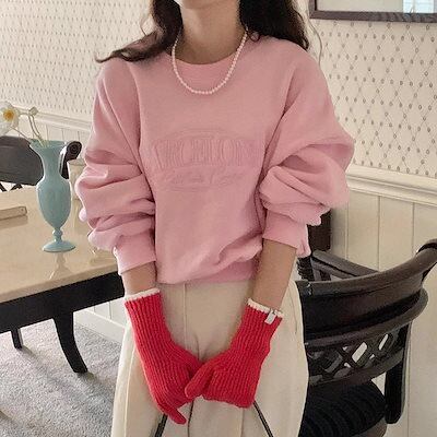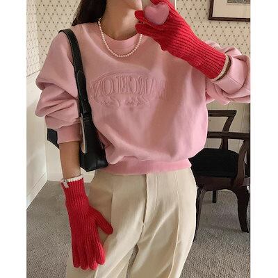 韓国ファッション 長袖パーカー レディース カップルの秋冬甘いだらしないクルーネックレター刺繍ベルベットの厚くてゆったりとした用途の長い袖のスウェットシャツの女性