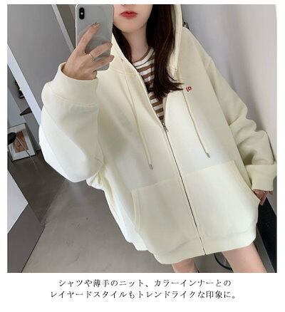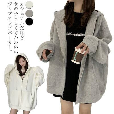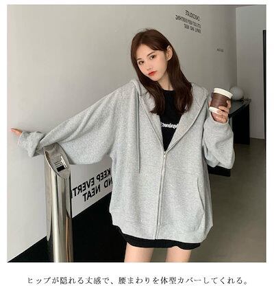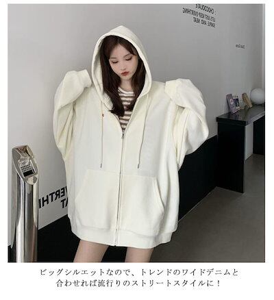 オーバーサイズ 大きいサイズ 前開き フード付き ジップパーカー 長袖 スウェットパーカー ドロップショルダー レディース アウター