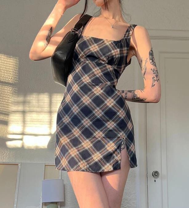 2023春夏新作 女 レディース ハイウエスト 袖なし 吊りスカート ミニ ワンピース ドレス タイトスカート