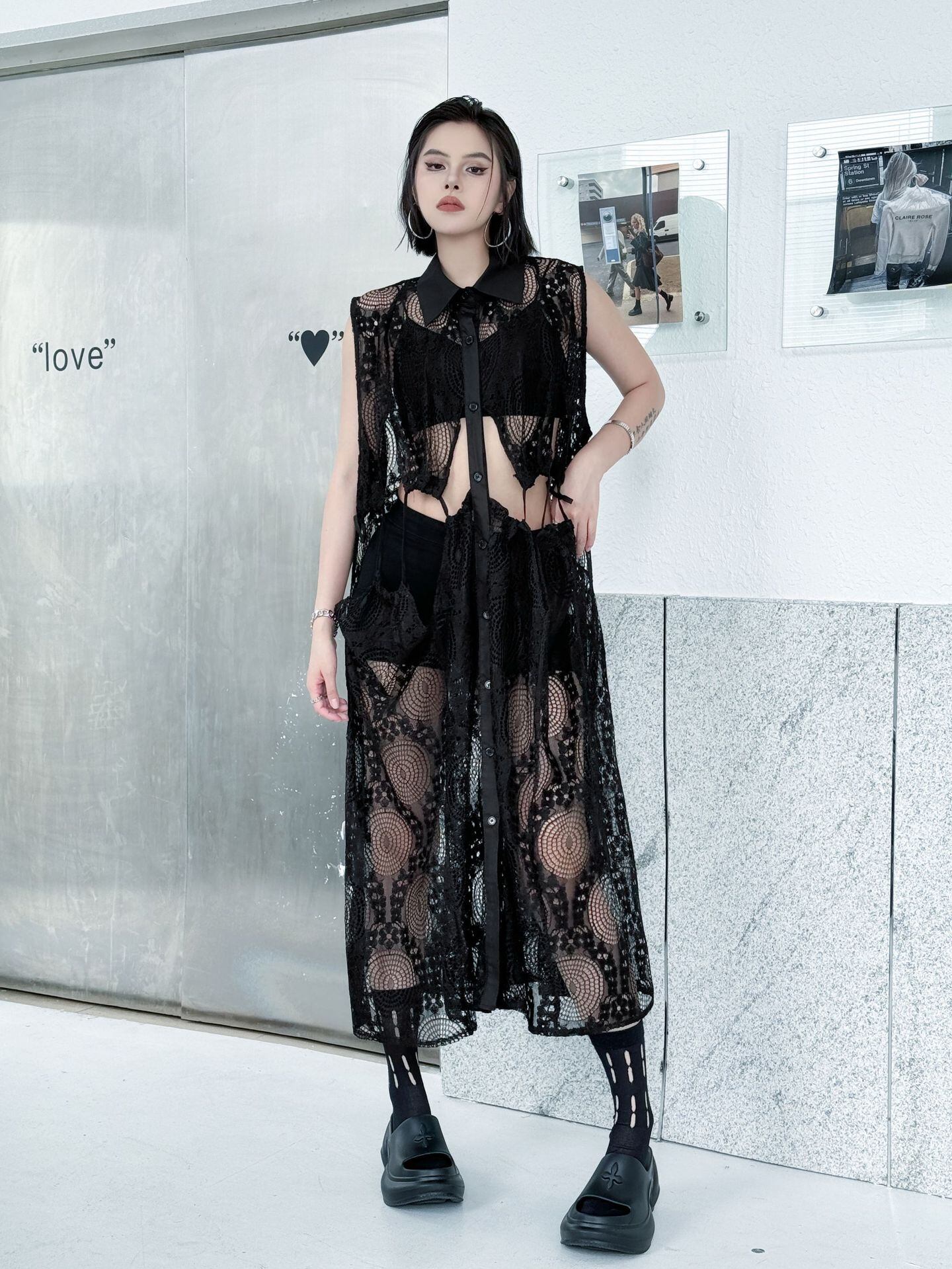 u27430 トップス レディース ロングワンピース レース ノースリーブ 2色 透かし彫り 2025春夏新作