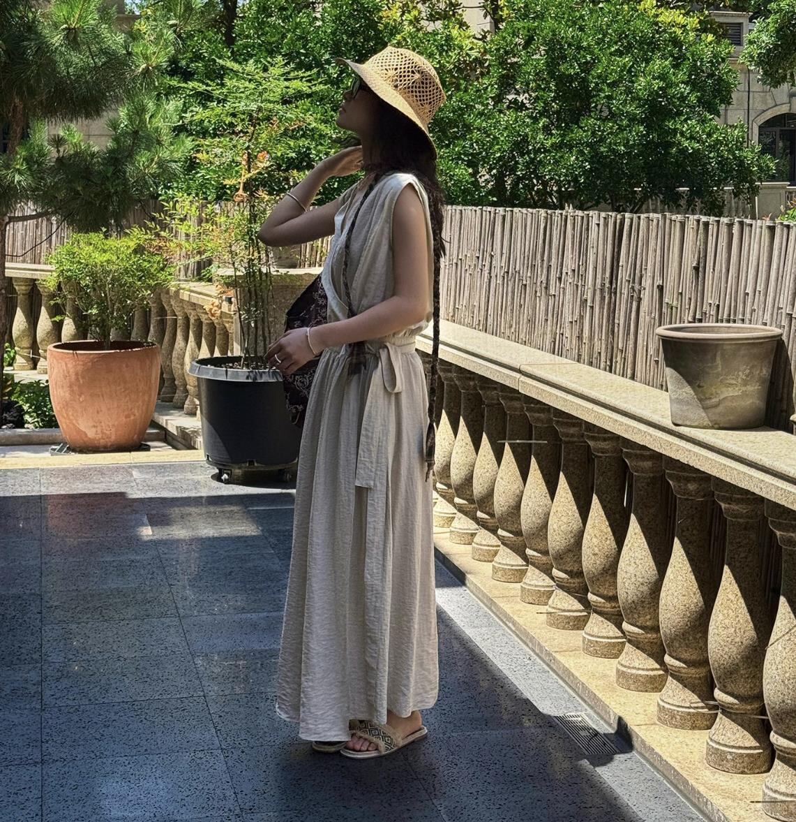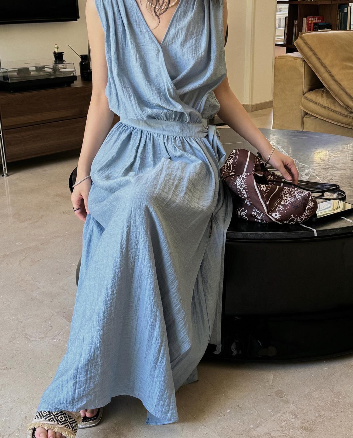 u28236トップス レディース ロングワンピース ノースリーブ Vカラー 2色 フレンチ 2025夏新作