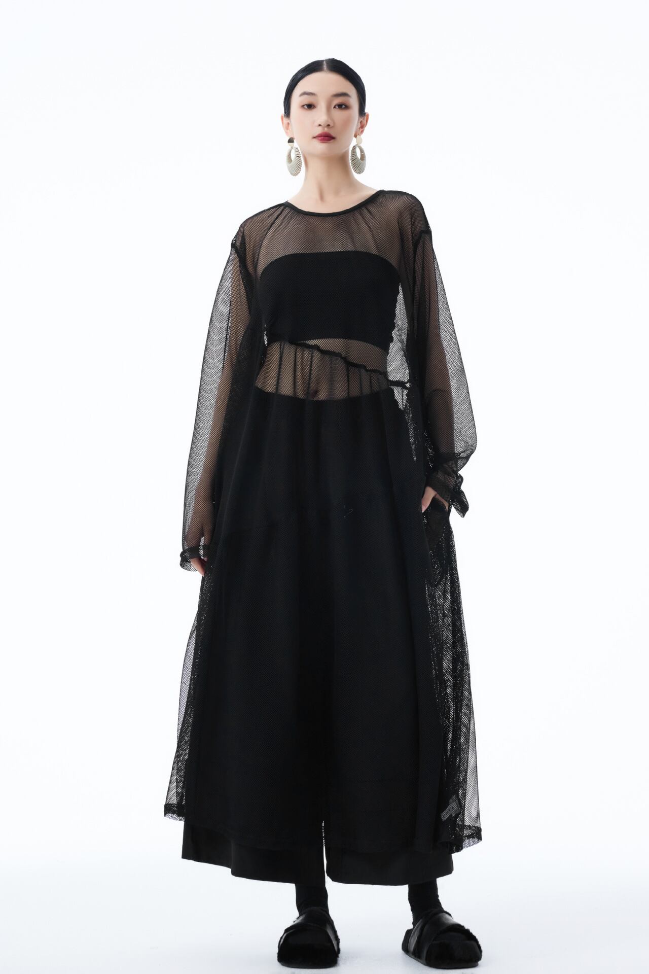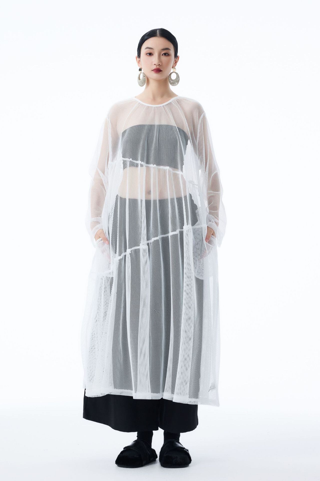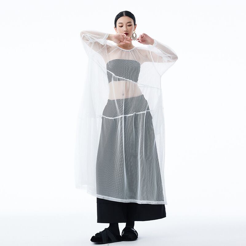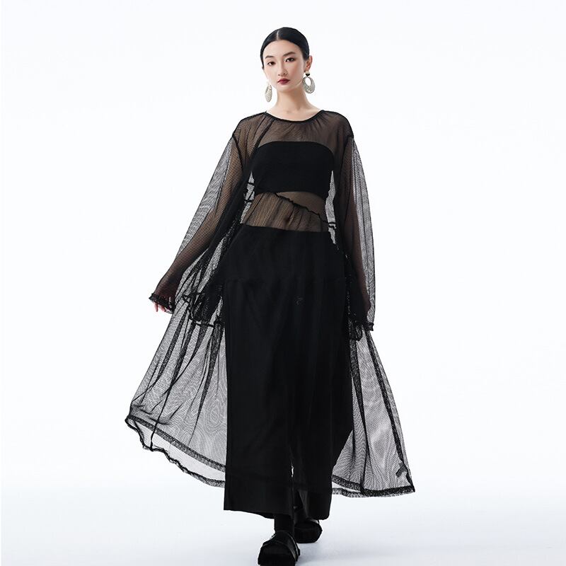u28528トップス レディース ロングワンピース 体系カバー 透かし彫り 3色 韓国風 2025夏新作