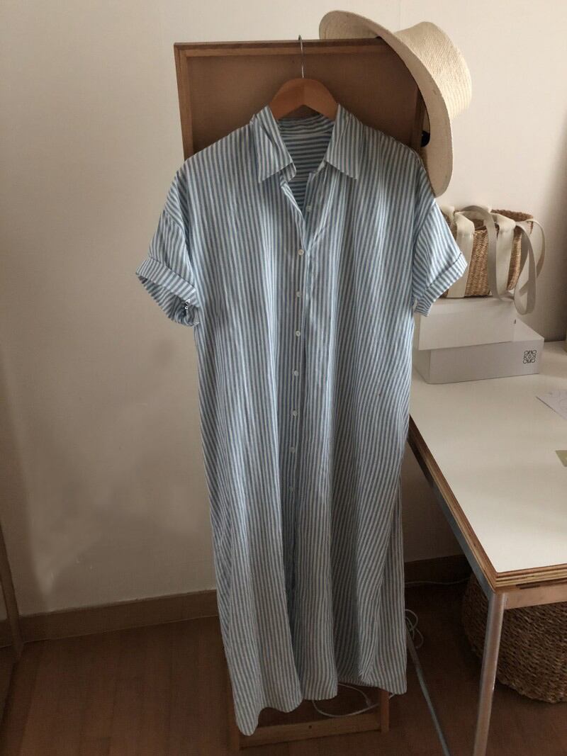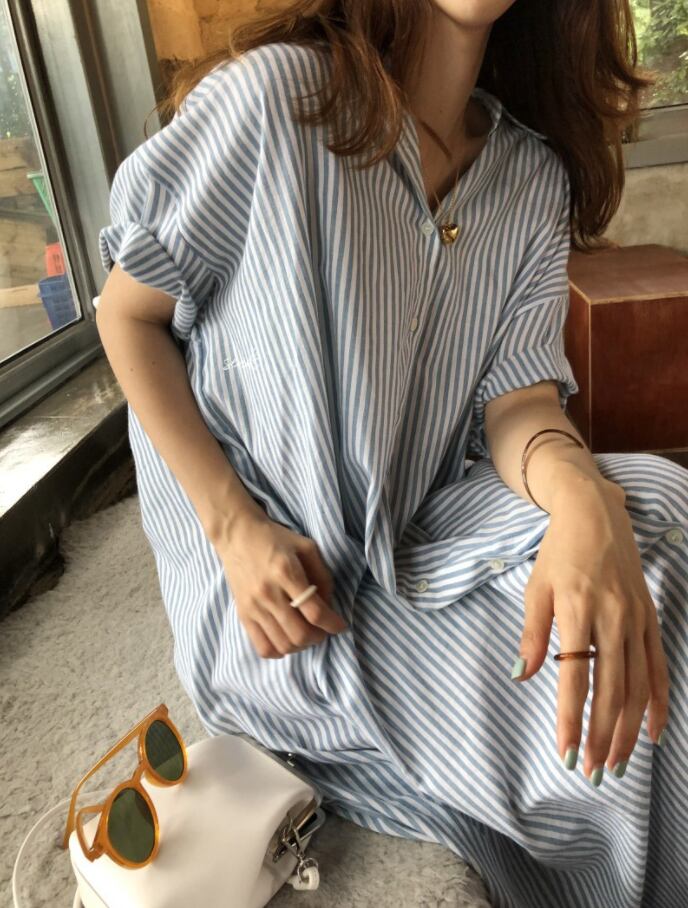 2022新作 レディース ボーダー柄 ベーシック シャツワンピース 半袖 トレンド 着回し