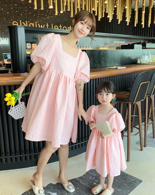 春夏新作★親子服★子供/レディース★キッズ服★半袖 ワンピース★ 90-140/FREE SIZE