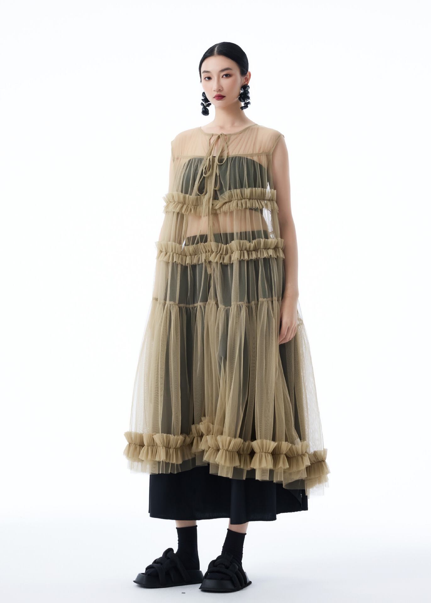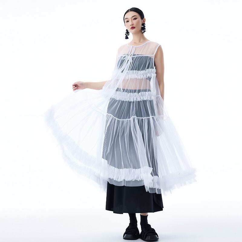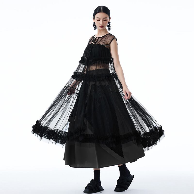 u28445トップス レディース ワンピース ロング丈 チュール 透かし彫り 3色 韓国風 2025夏新作