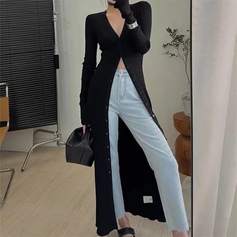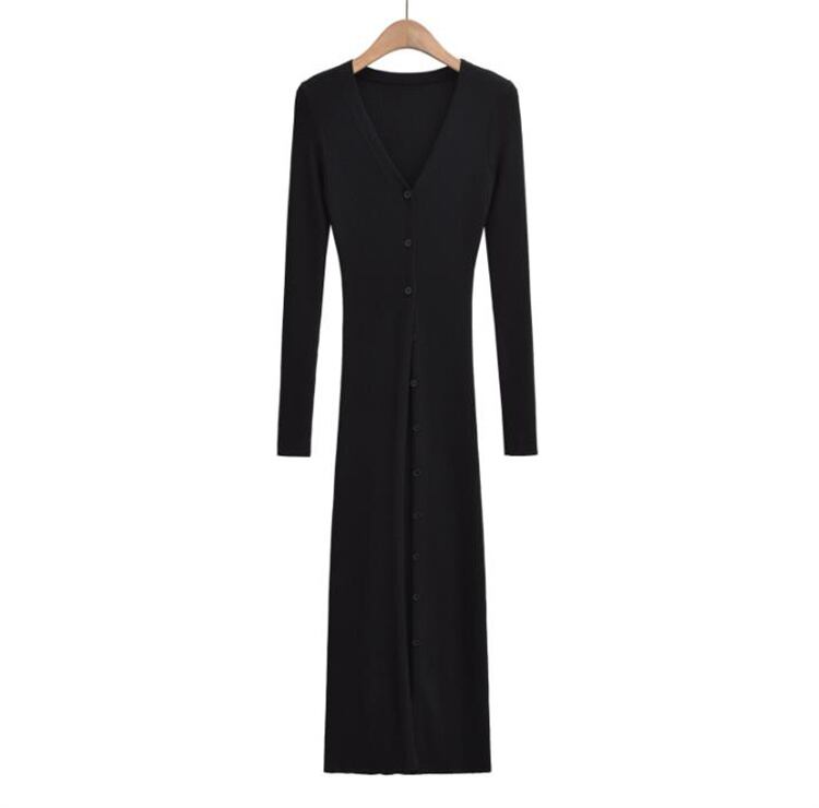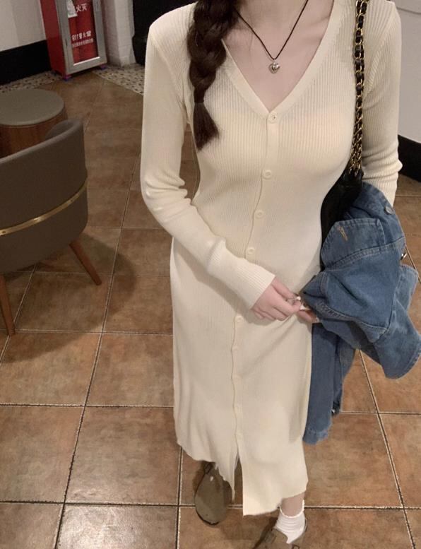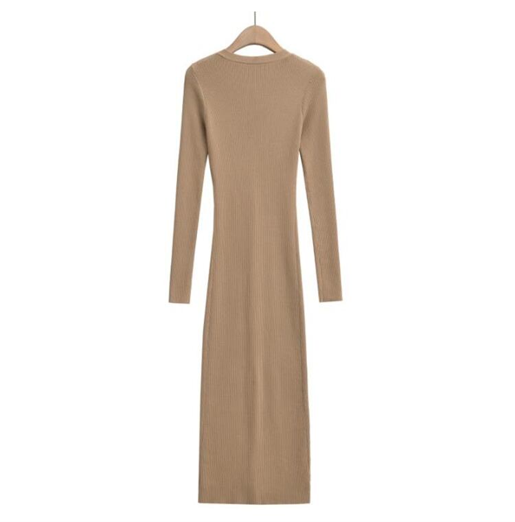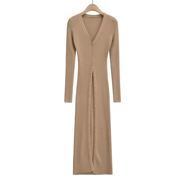オータム新作 レディースニットドレス 長袖Vネック フィットカット 日差しから守る 上品着用