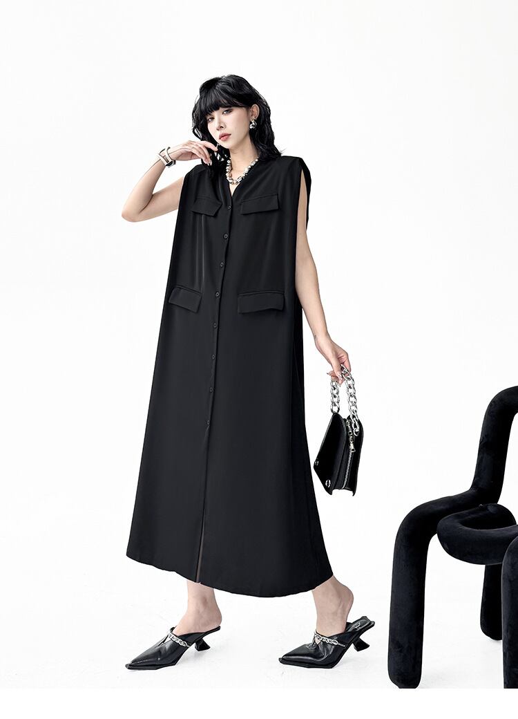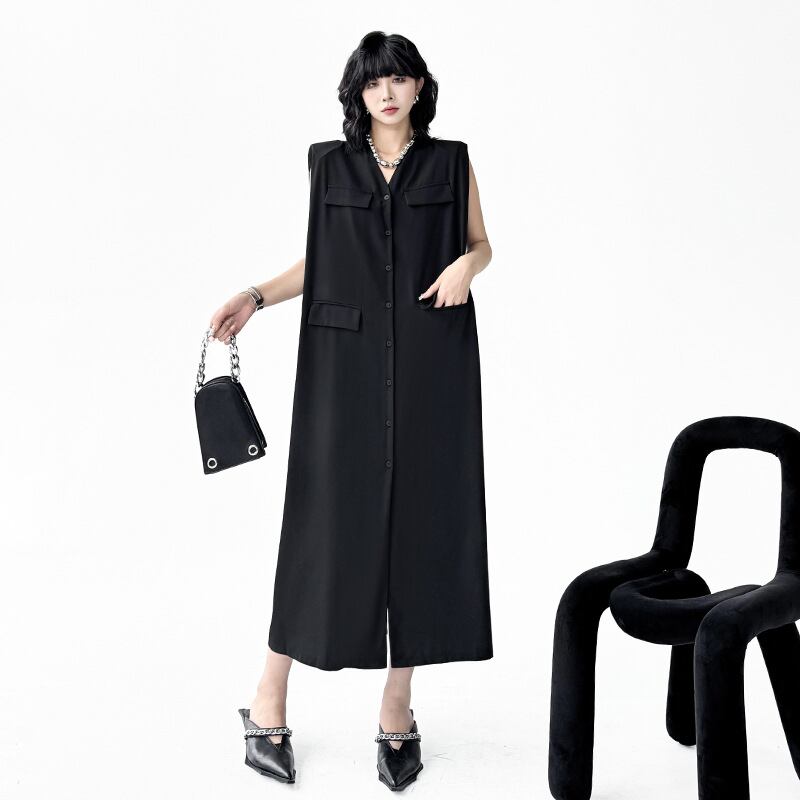 u28807トップス レディース ノースリーブ ワンピース Vカラー ワイド ヴィンテージ 2025夏新作