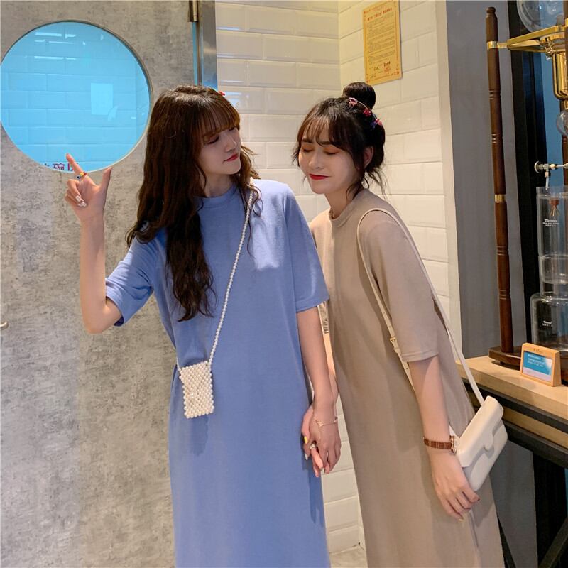 無地 可愛い ワンピース Tシャツ トップス 半袖 シンプル レディース (M-XL)